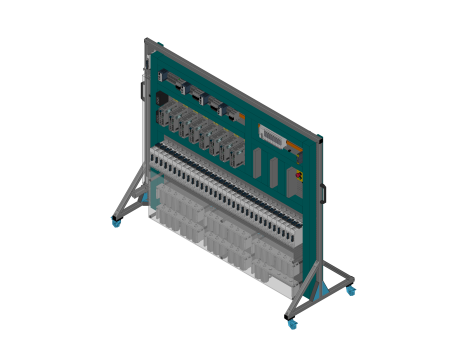 Das Motoren-Testrack dient zum gleichzeitigen Betrieb von bis zu 32 dynamische bürstenlose permanenterregte Synchronservomotoren plus einer Linearachse, angetrieben mit einem Schrittmotor und Zahnriementrieb.