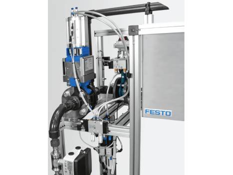 A separate control cabinet with PLC and operator touch panel, multifunctional frequency converter, intelligent energy monitoring and web-enabled process visualization serves as a learning field for electrotechnical work based on Water 4.0.