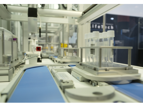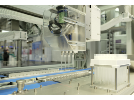 An ELISA test for measuring the vitamin B12 concentration is implemented as an exemplary application. The LabAutomation system enables complex processes for the analysis of liquid samples through 4 flexibly combinable stations. The system enables automated, safe and efficient handling of sample vials and microtiter 96 plates. It offers a wide range of applications: