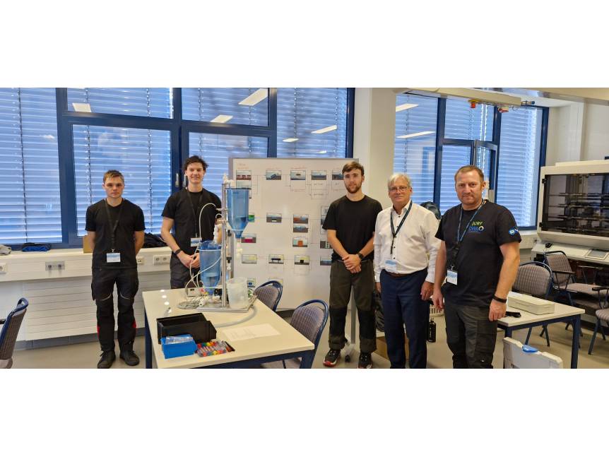 Practical training included plant construction and operation with the EduKit PA, as well as improving process understanding of the complex interrelationships between sewage treatment plants and waterworks with the DWA training kit. It remains to be seen which of the three will travel to WorldSkills 2026 in Shanghai, said the supervising trainer, Marcel Taubert from BVE in Weimar. Thanks to Adiro for their support with training hardware and providing tasks, and to Festo for their wonderful hospitality at the FLZ.